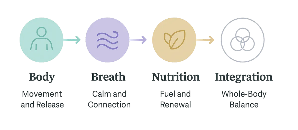 Your body is not a collection of separate parts. It is one connected system where movement, breath, and nourishment influence one another. When these systems align, your body heals more easily, your energy stabilizes, and your mind becomes clear.